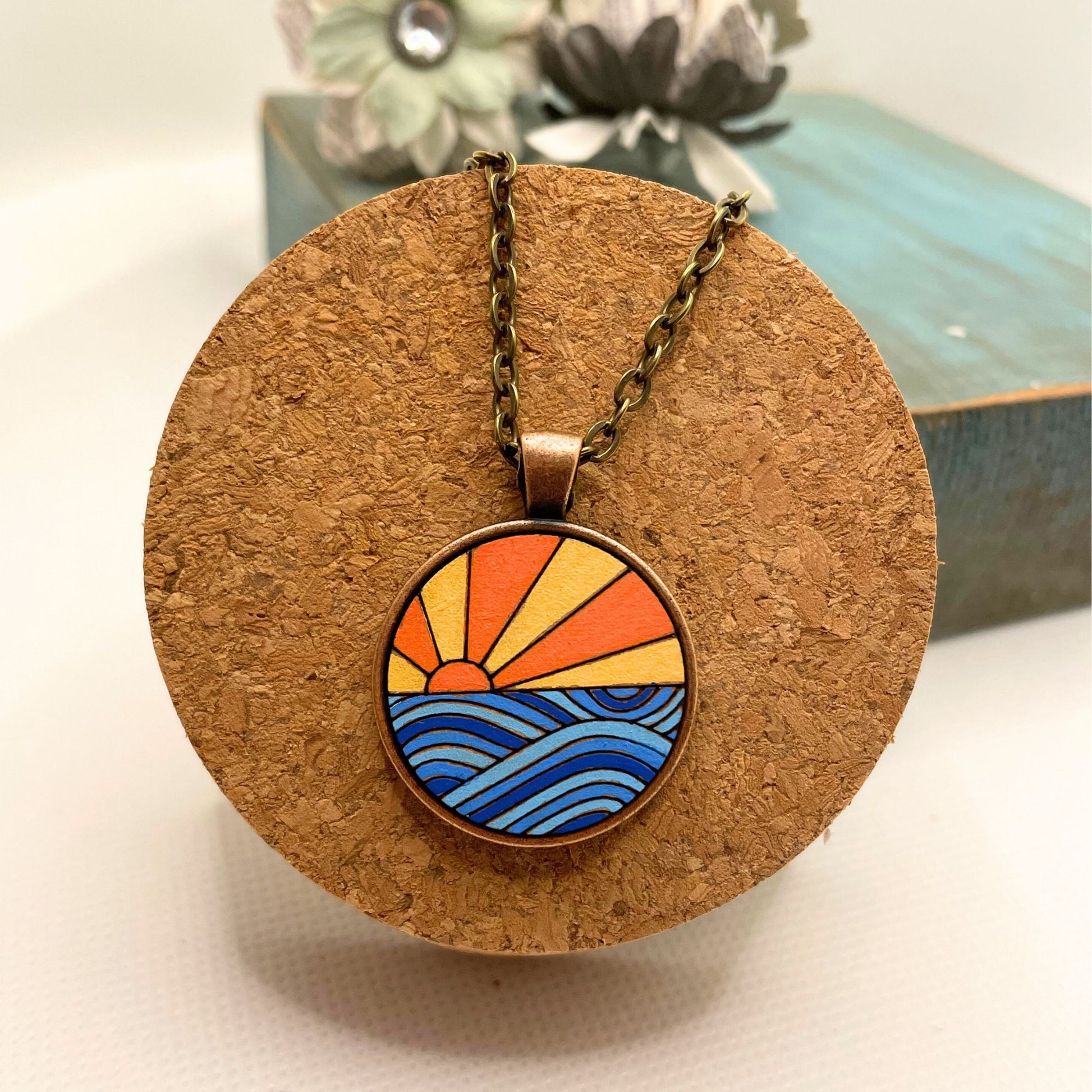 Ocean Sunrise Necklace, Bezel Necklace, Ocean Jewelry, Sunset Jewelry, Nature Jewelry, Ocean Jewelry